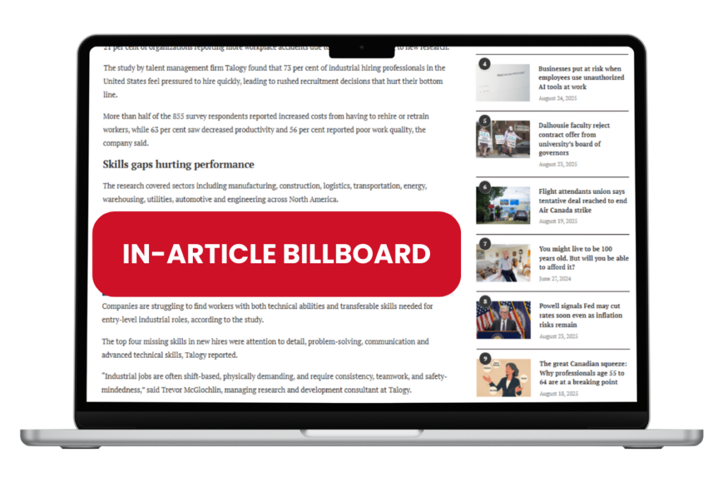 Your chance to own a topic category! Your message appears in the body of every article tagged with the category you're sponsoring. Includes all articles in archive and all new articles posted. Exclusive position appears in middle of article, ensure engaged readers see your messaging. Wide range of categories available including topics like HR Technology, Payroll, Recruitment, Mental Health, Workplace Safety/OHS, Employment Law, Immigration and more! Also includes a special topic page with your advertising running as a microsite takeover.